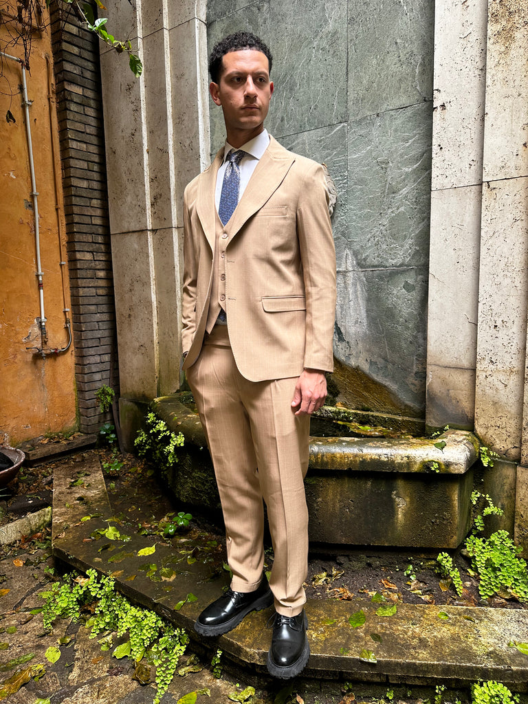 - Abito collezione Roma tre pezzi colore gessato cammello
